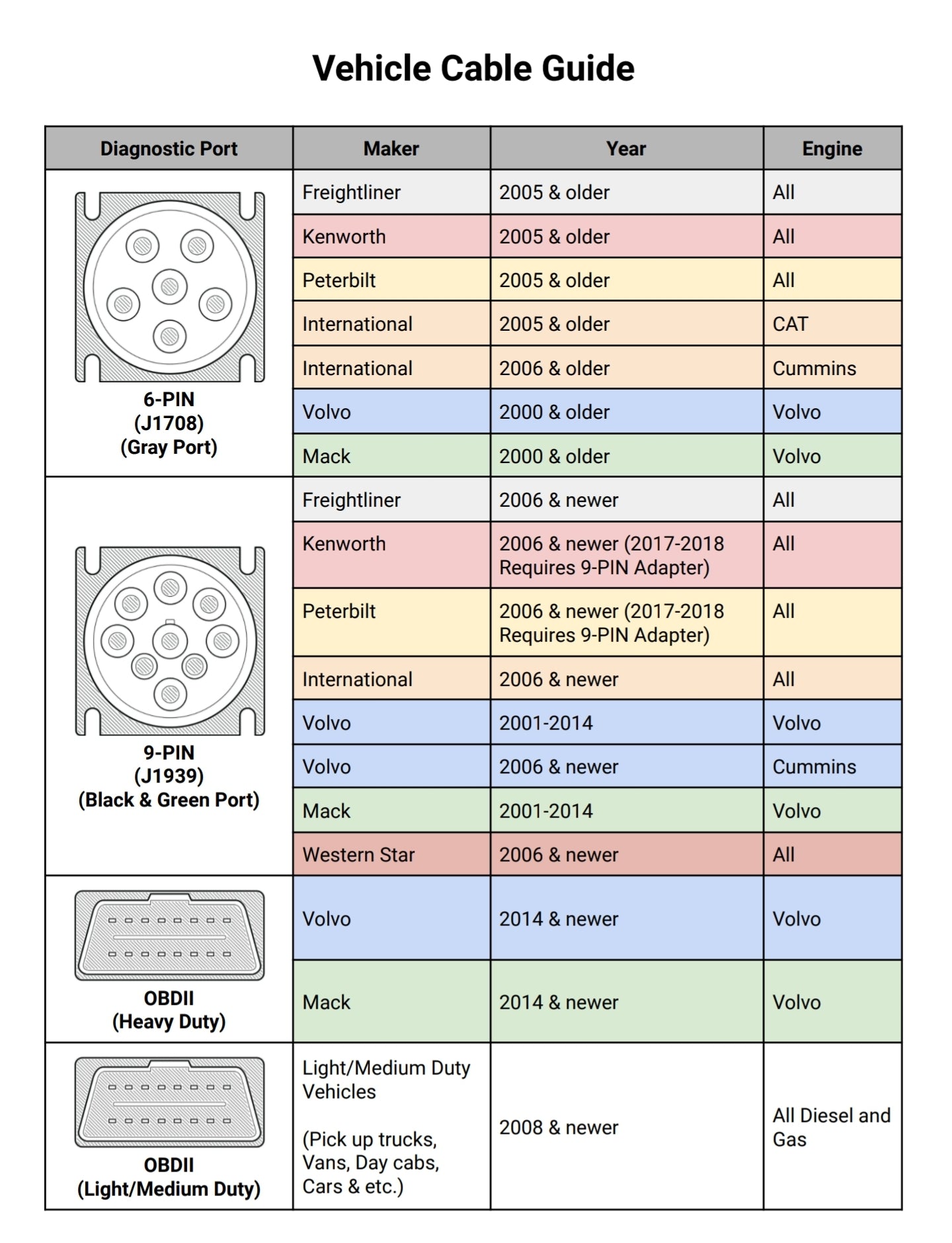 - 2017-2018 model-year vehicles require a 9-PIN Adapter